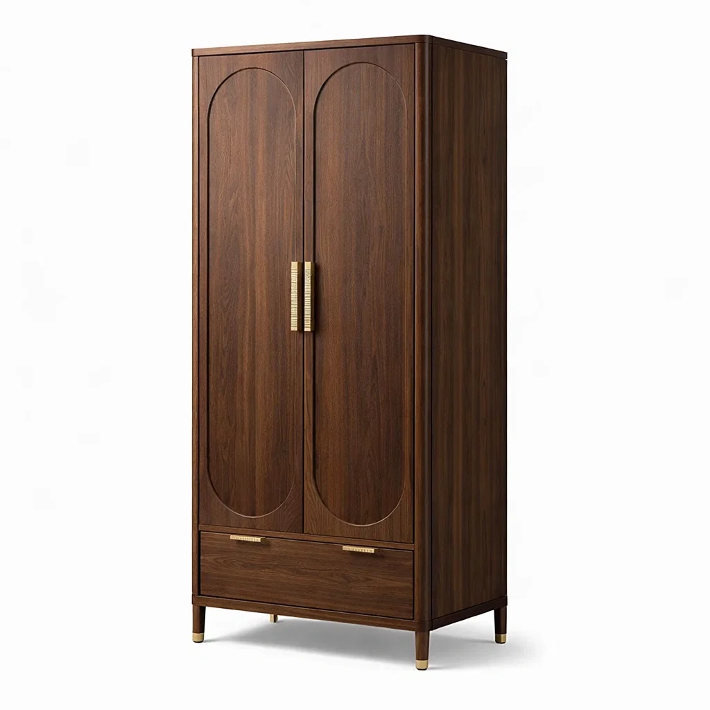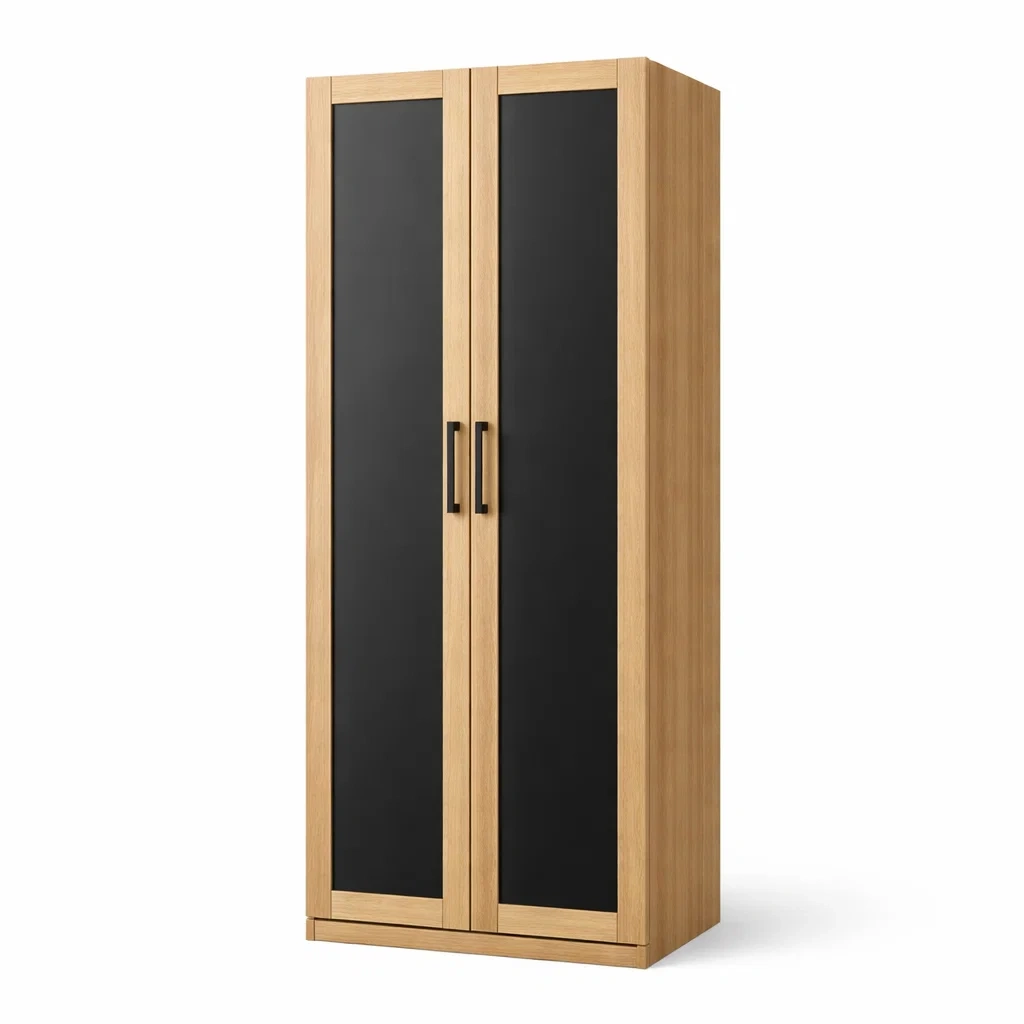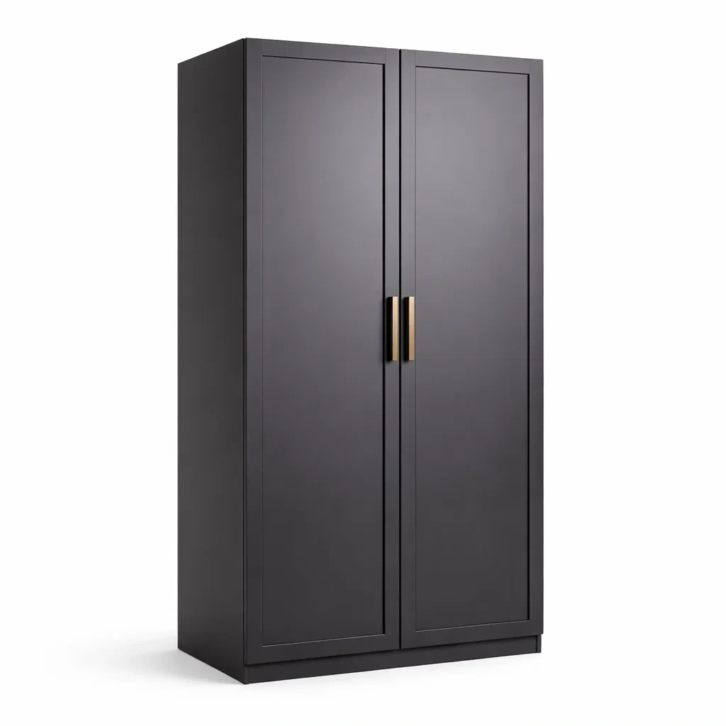 Armoire en bois noir avec 2 portes et poignées métalliques