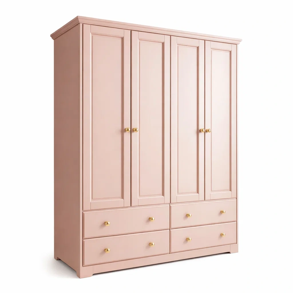 Armoire en bois massif rose avec 4 portes et 4 tiroirs