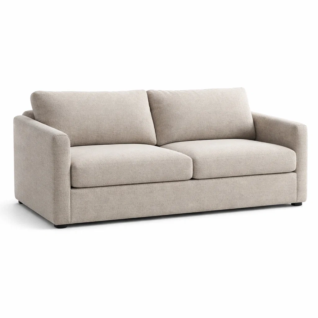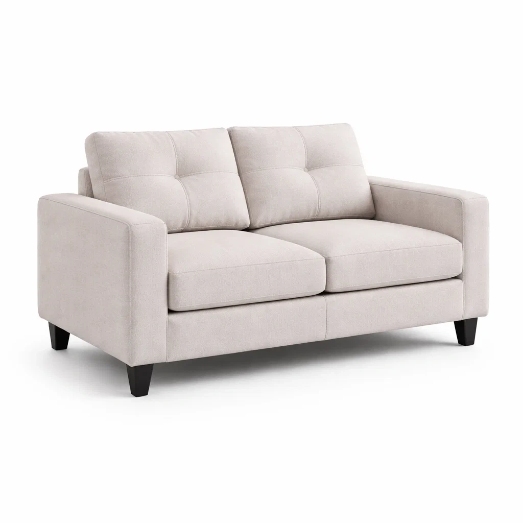 Canapé en tissu polyester beige avec 2 places et pieds en bois