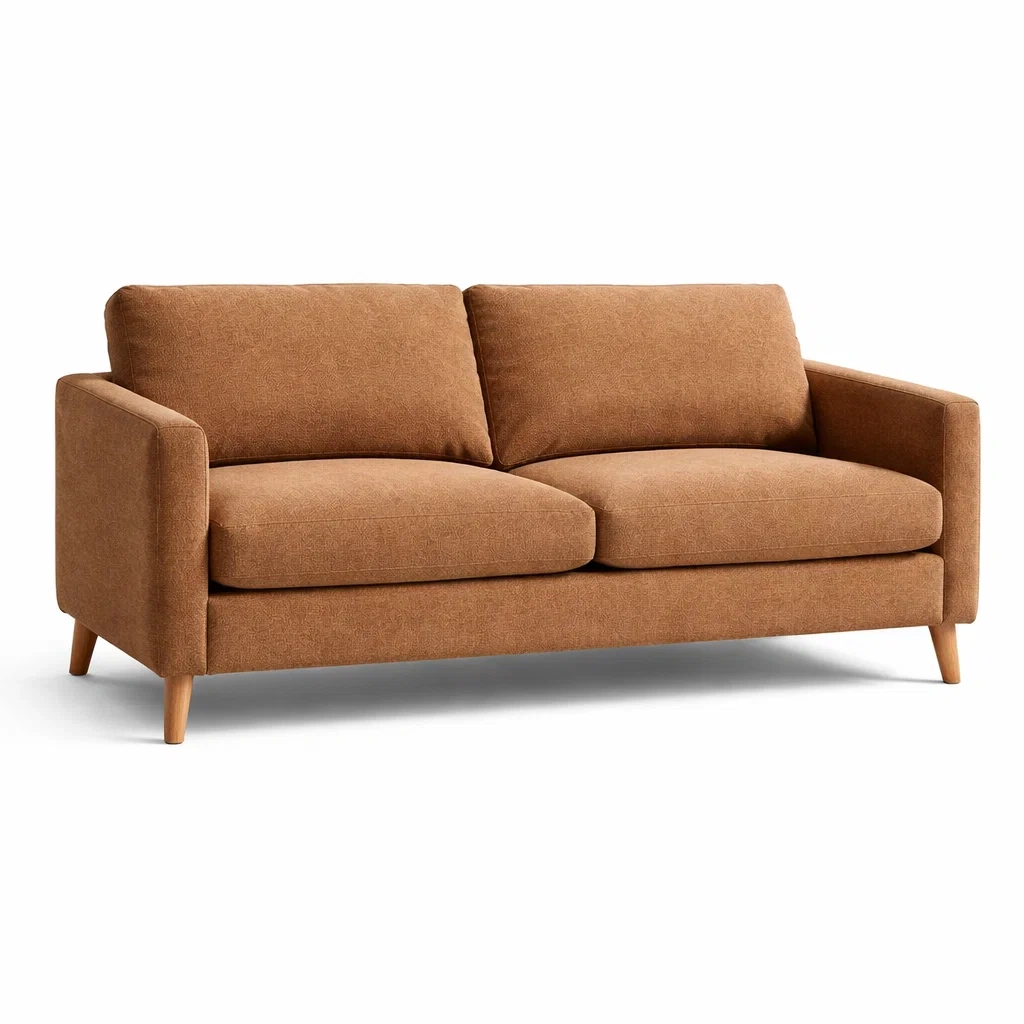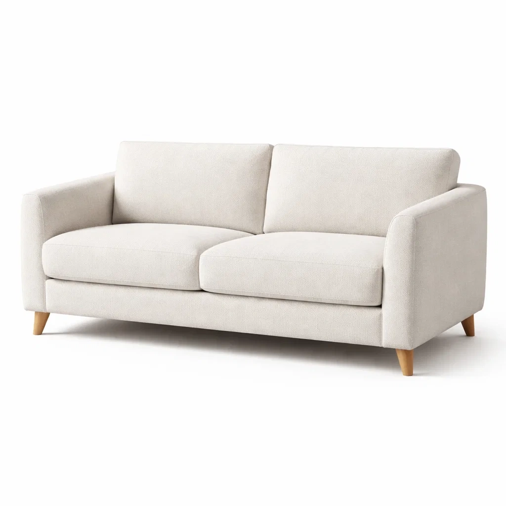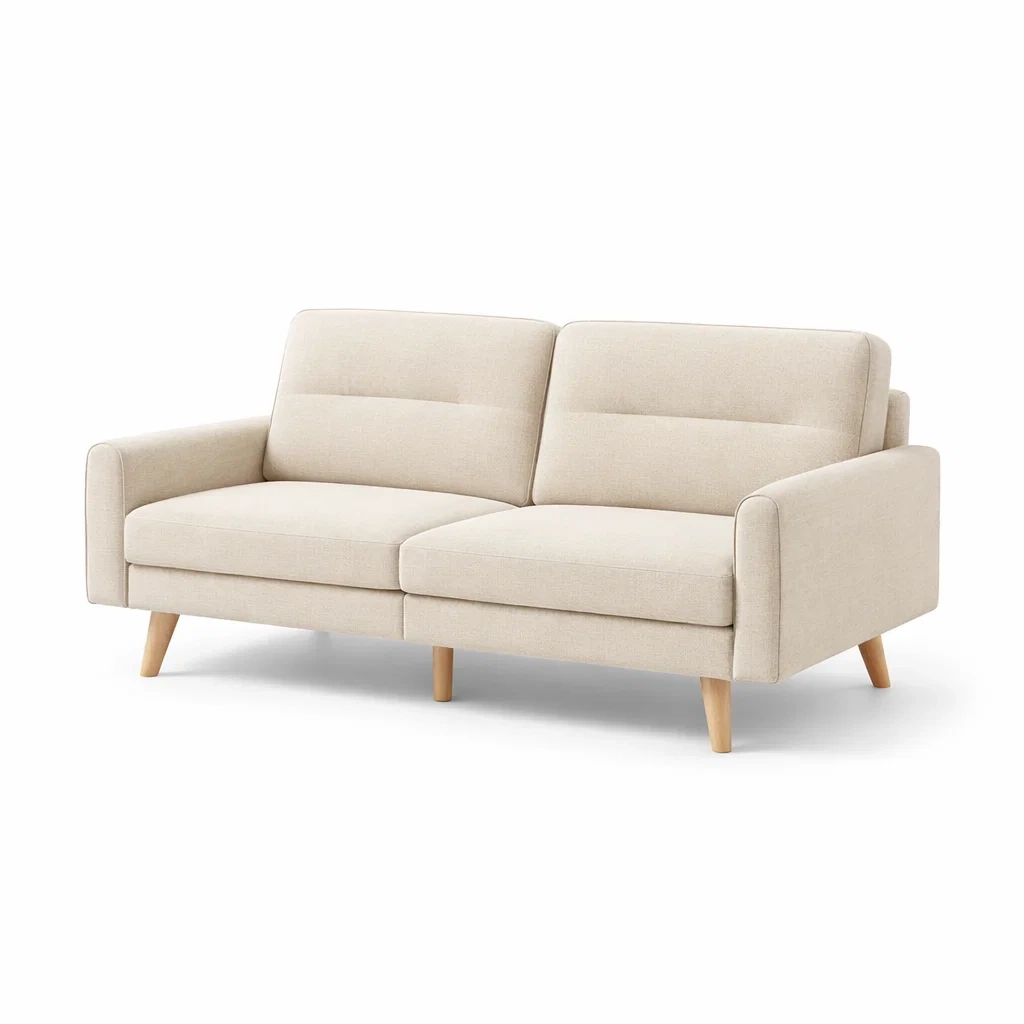 Canapé en tissu polyester beige avec 3 places et pieds en bois 210 x 85 x 90 cm