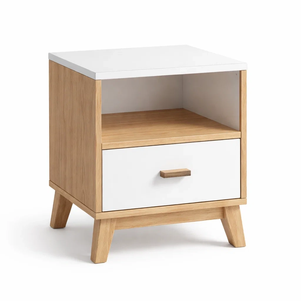 Table de chevet en bois MDF blanc avec 1 tiroir et 1 niche