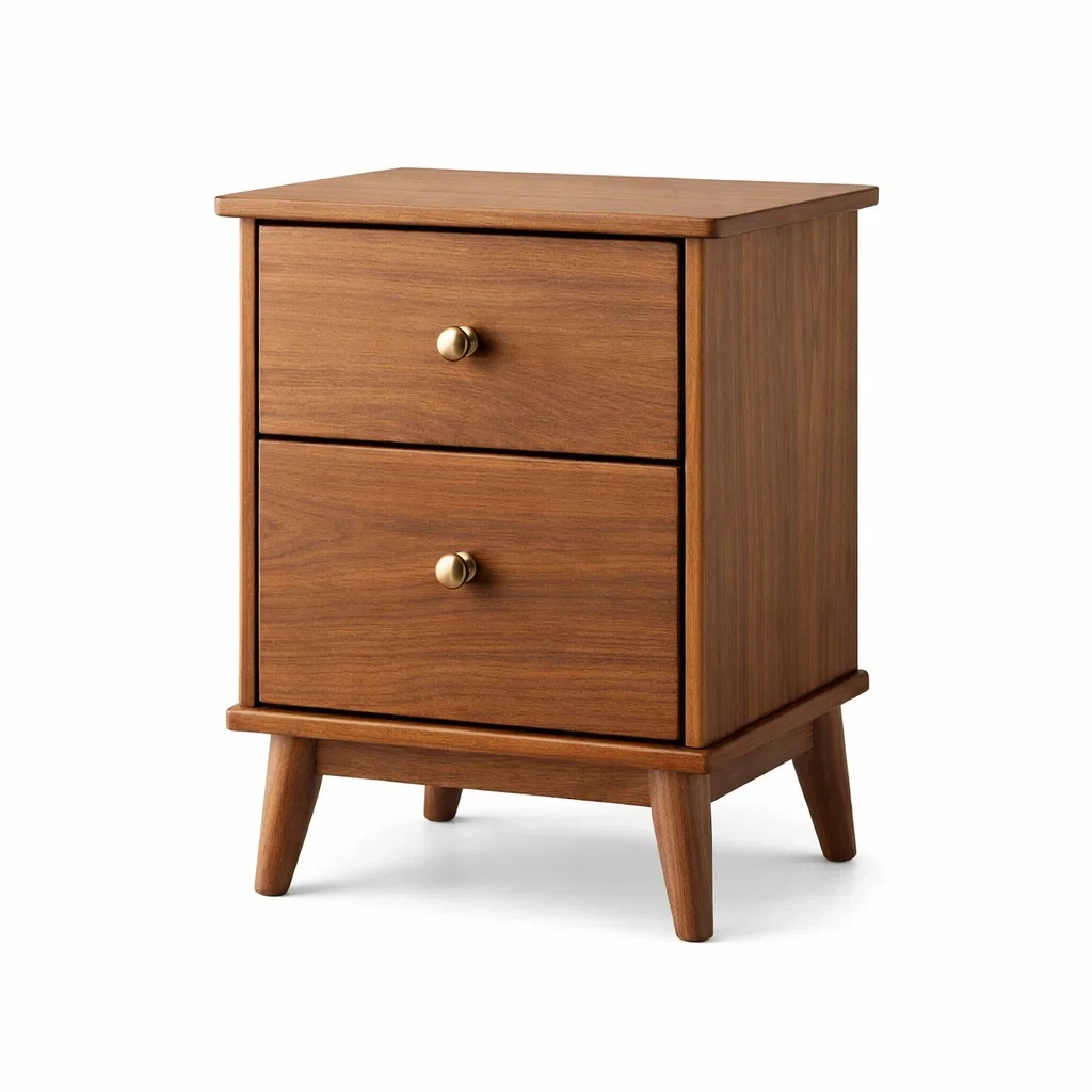 Table de chevet en bois de noyer brun avec 2 tiroirs
