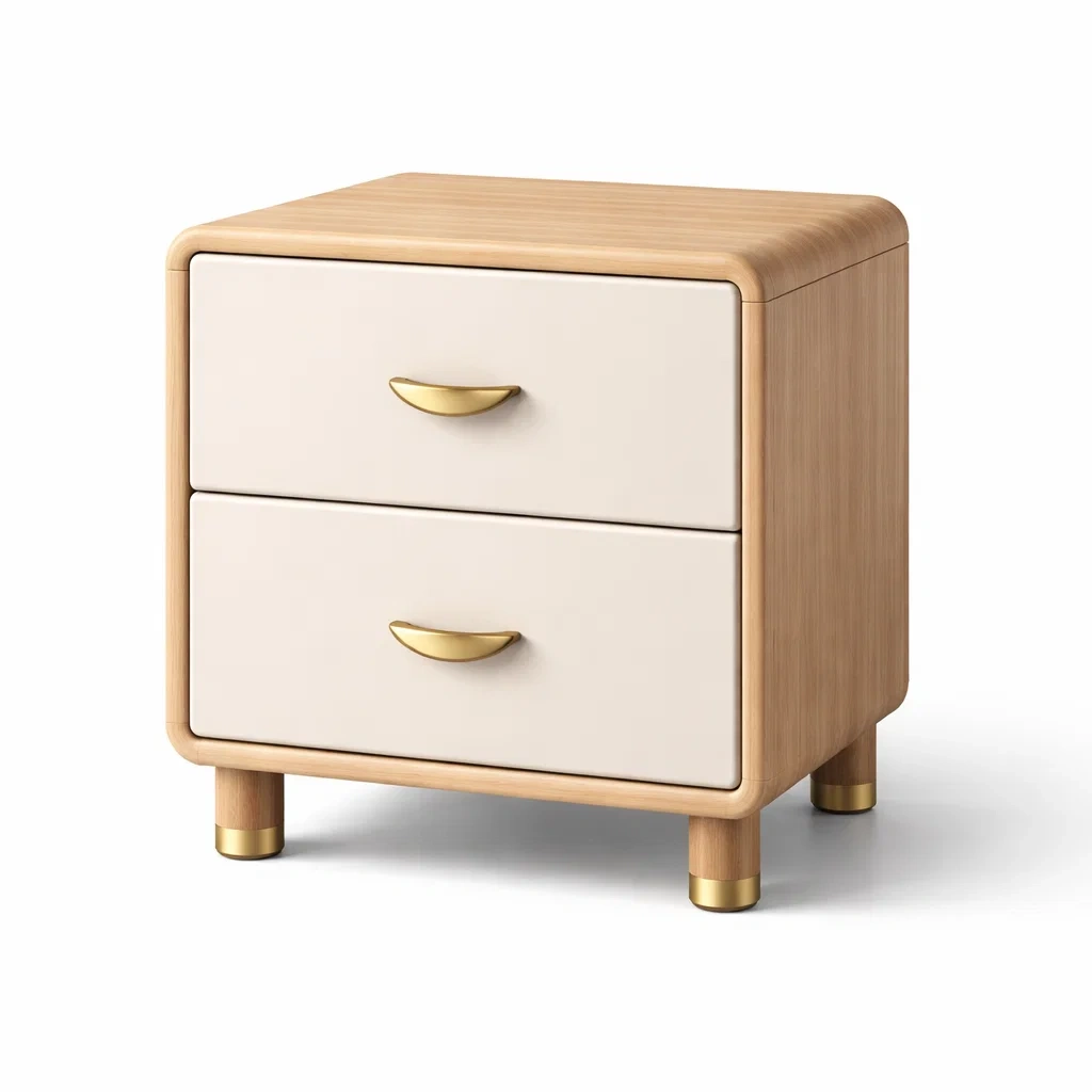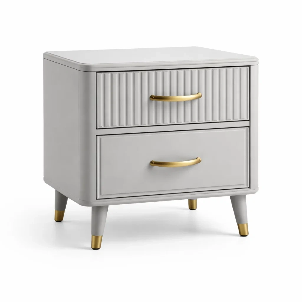 Table de chevet en bois MDF avec poignées dorées