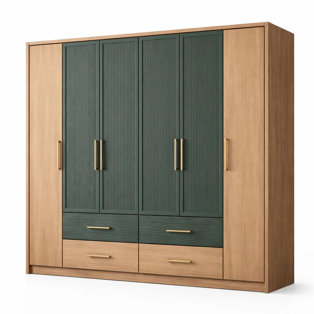 Comprend : 6 portes, 4 tiroirs, étagères de rangement.