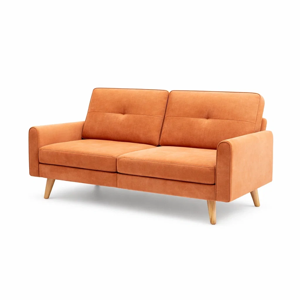 Canapé trois places avec revêtement en cuir synthétique. Il est doté de pieds en bois massif et de coussins amovibles en mousse polyuréthane.