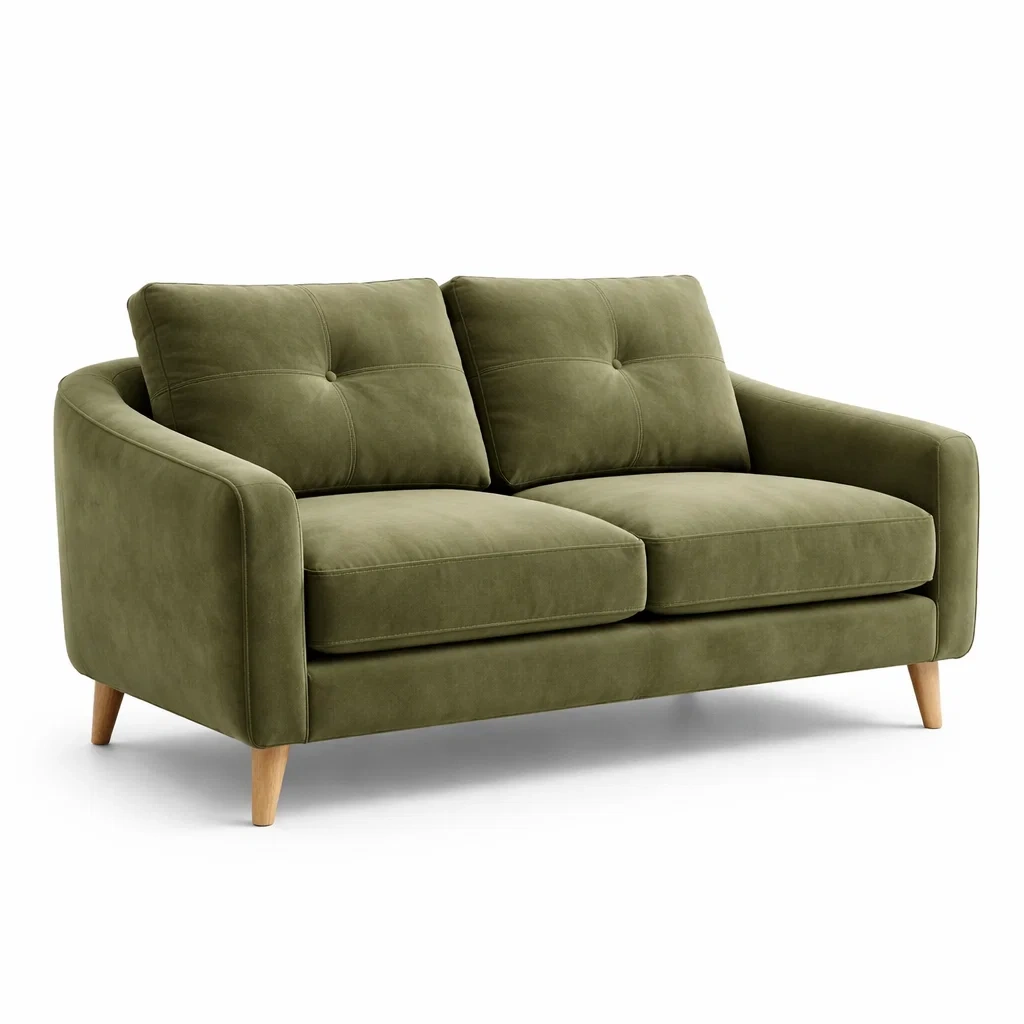 Canapé en velours polyester avec structure en bois massif.