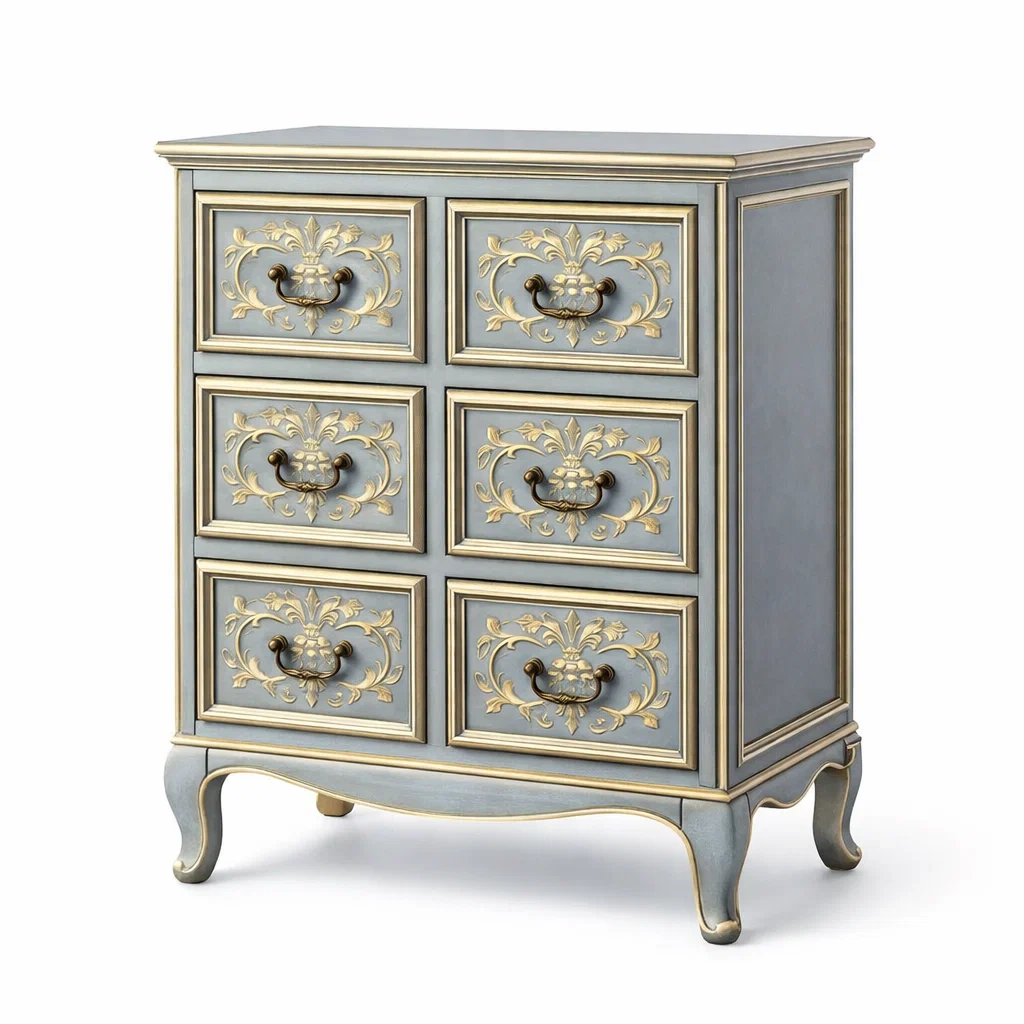 Finition : Peinture bleue avec détails dorés