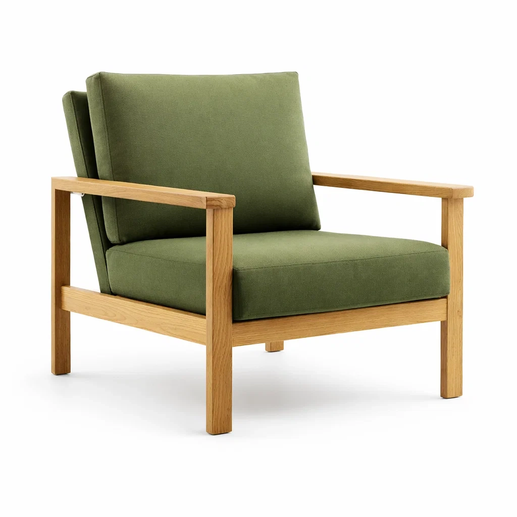 Fauteuil en chêne et tissu vert