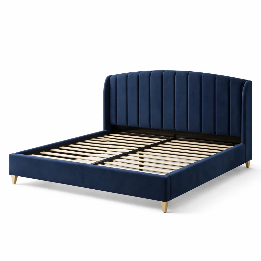 Structure du cadre : Type plateforme avec lattes en contreplaqué pour le support.