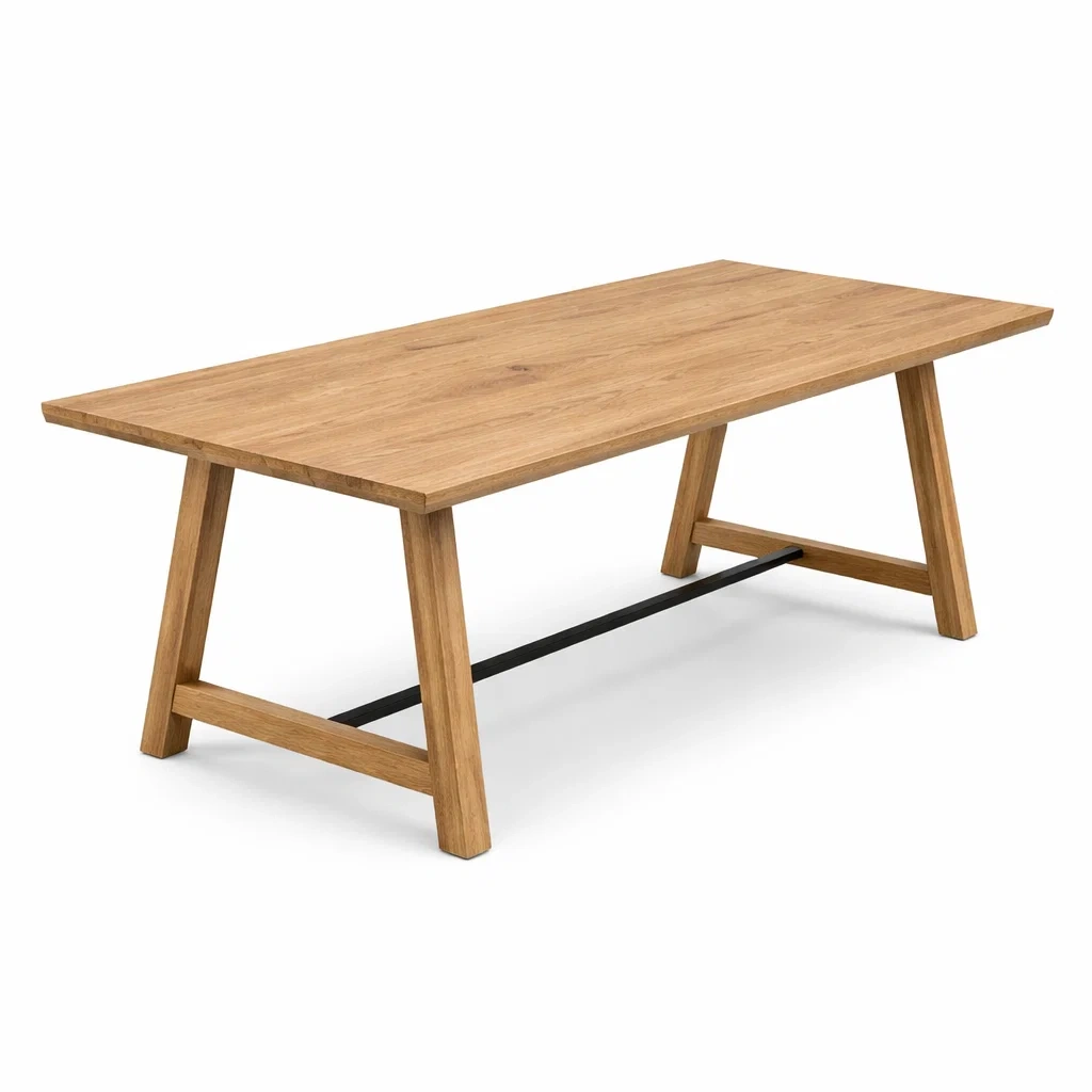 Matériaux : Plateau et pieds en chêne massif, barre transversale en acier.